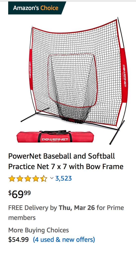 This net is good for setting up in the garage or backyard to practice hitting and throwing.